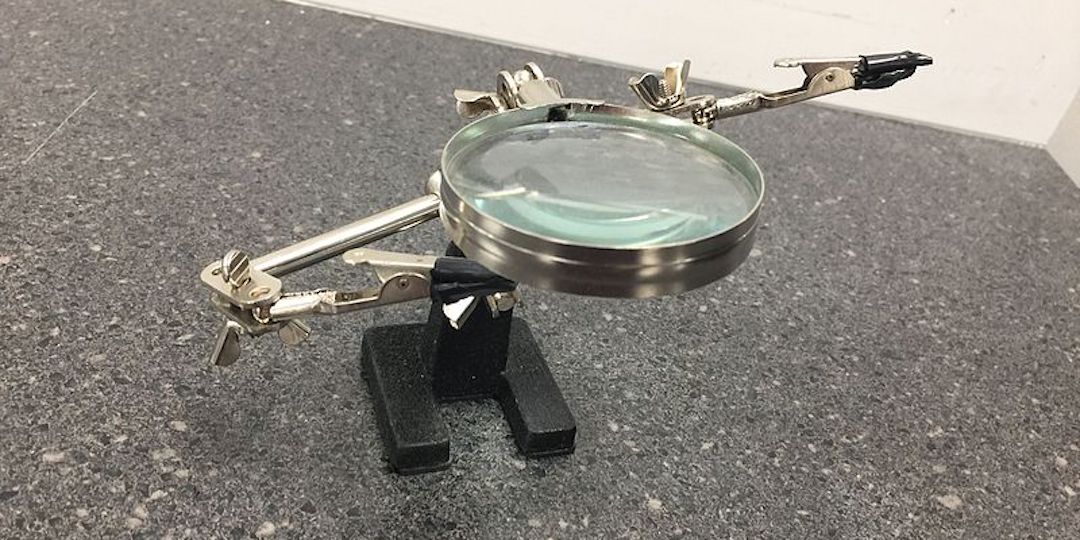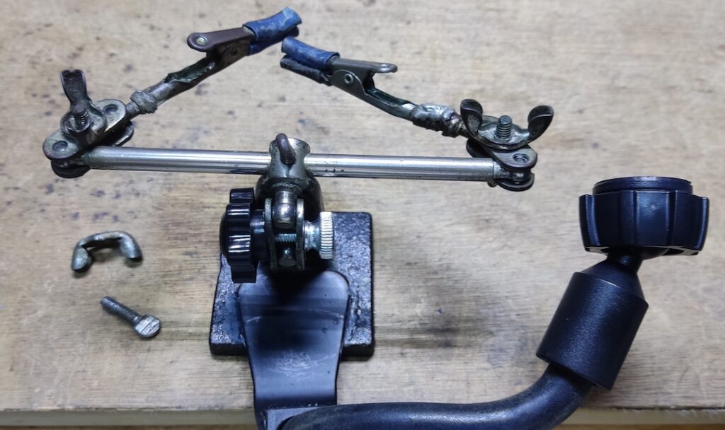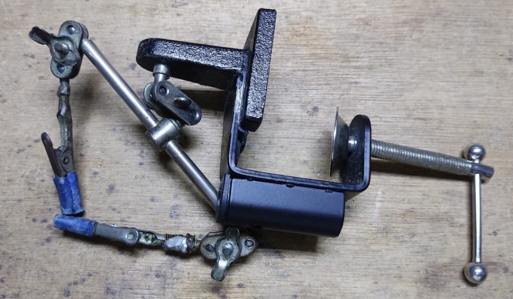 The generic helping hand I have is just begging to be clamped to the edge of the table so it won’t move around when I’m trying to use it. So, the first modification I made was to add a clamp to allow me to use the helping hand securely fixed at my workbench’s edge.